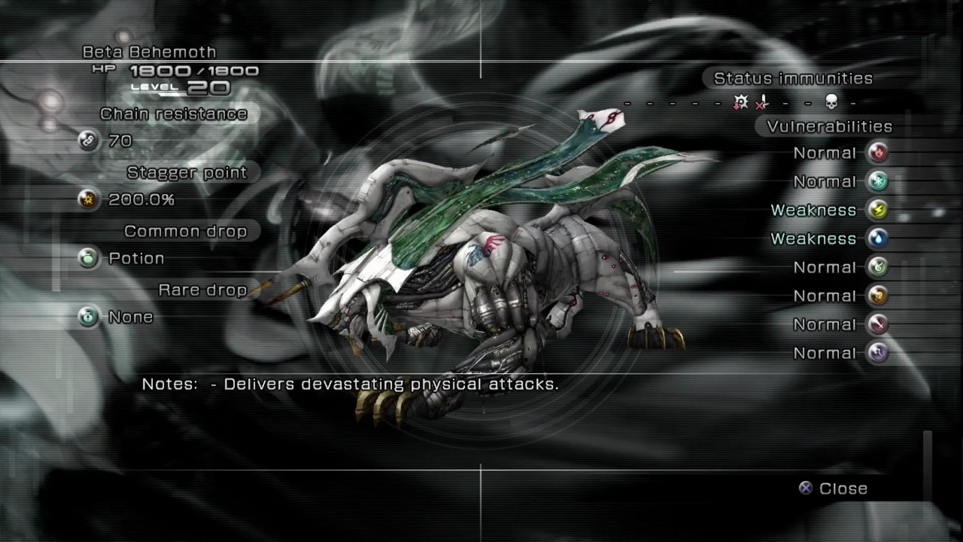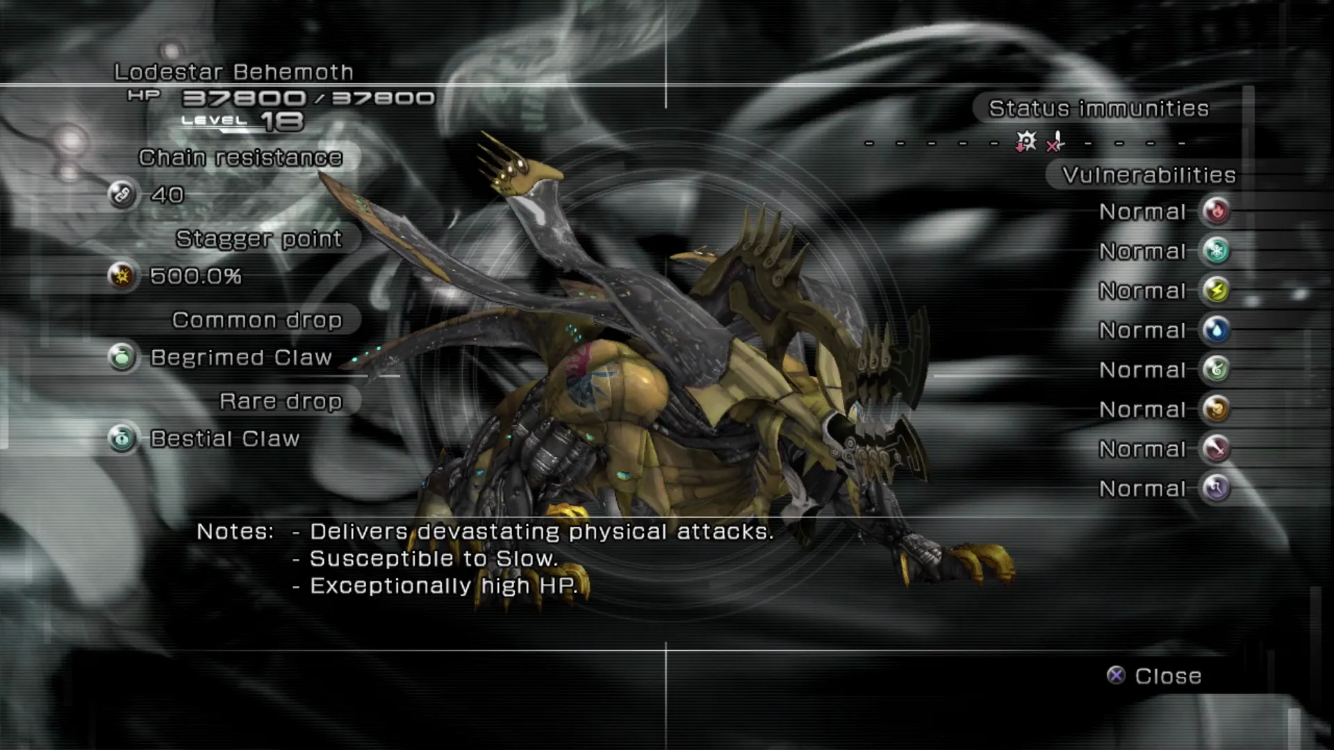 - Exceptionally high HP. - Drops: