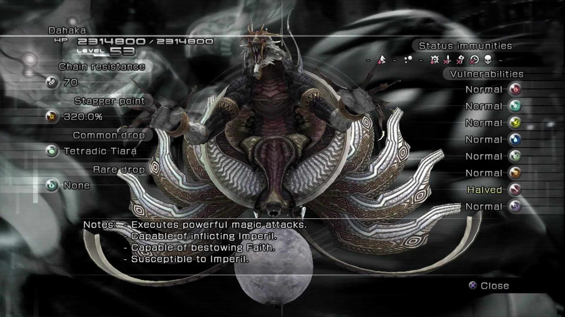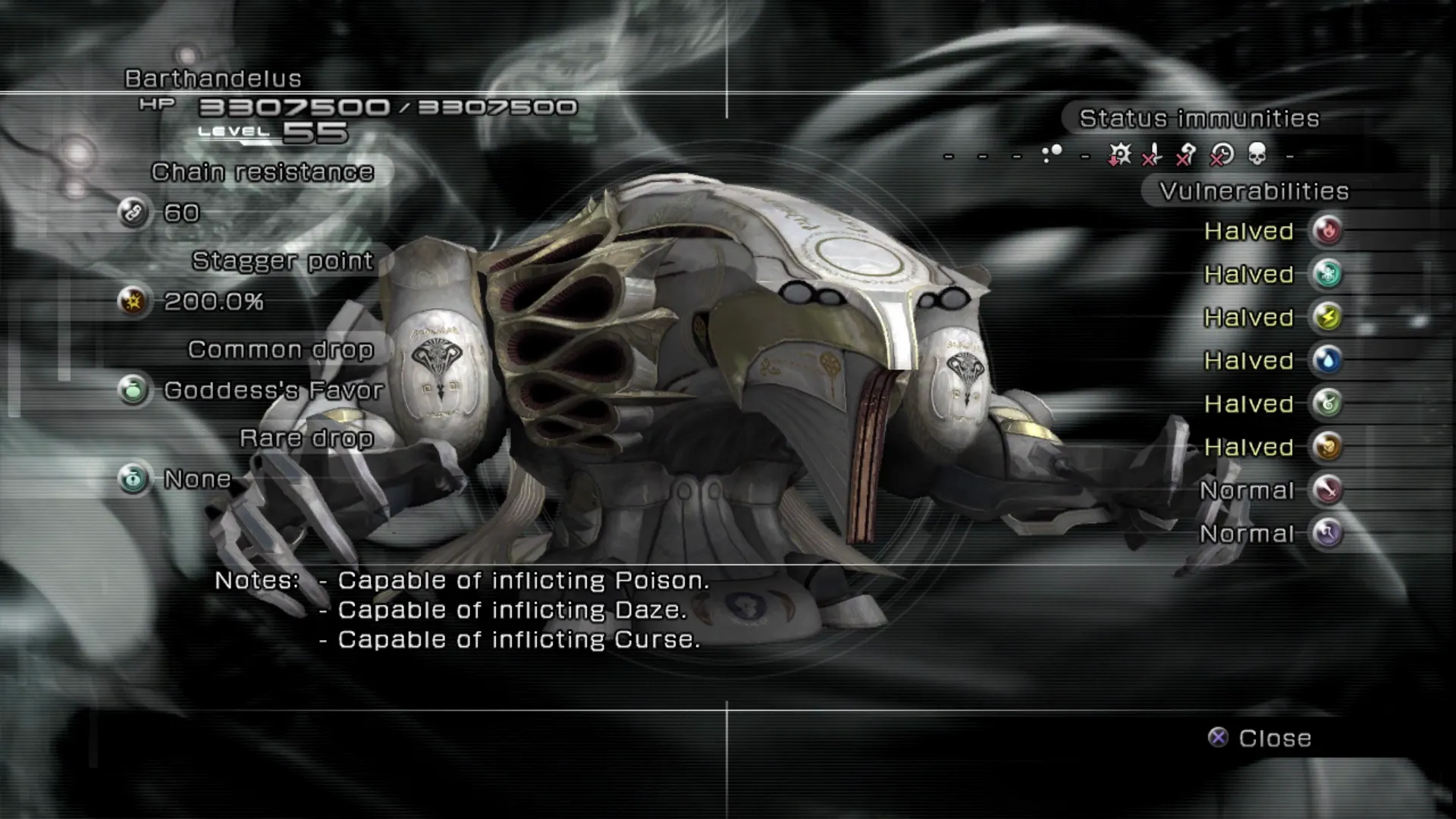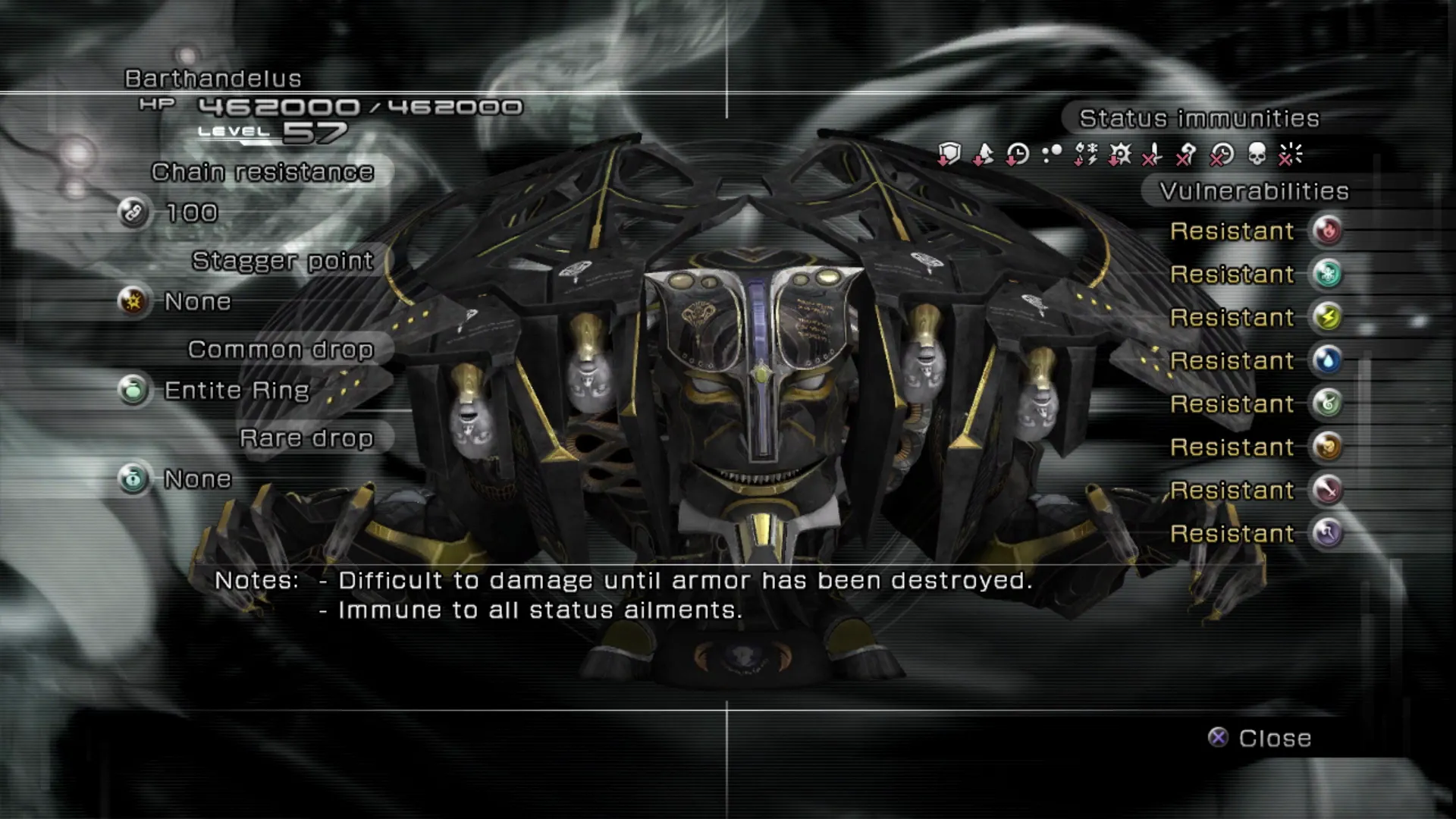 - Immune to all status ailments. - Drops: